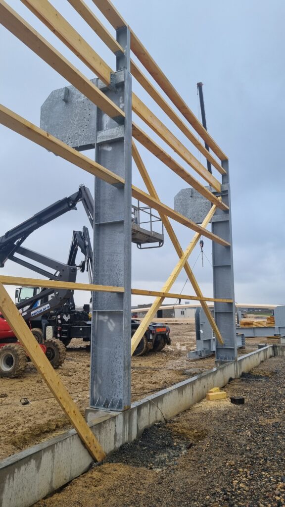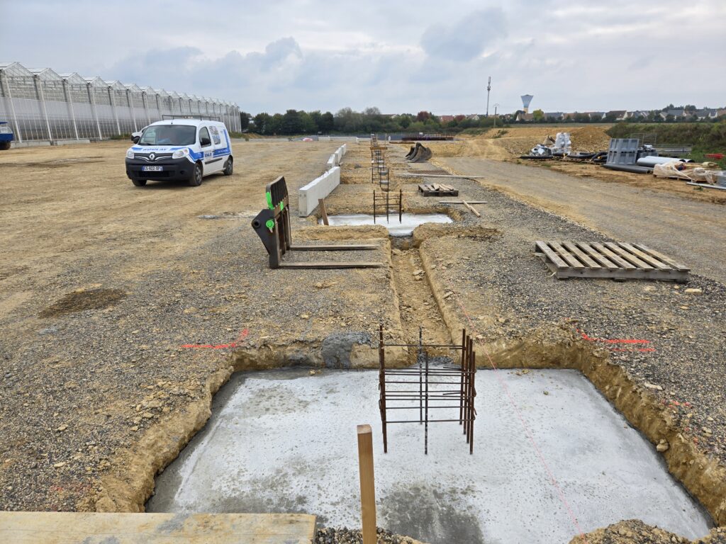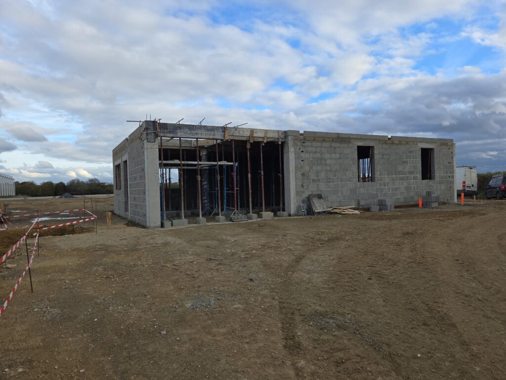Nos équipes de maçons ont réalisé l'ensemble des fondations et de la structure afin de recevoir la charpente : Massifs de fondations, longrines, dés béton, mur de quai, mur agglos, plancher béton.