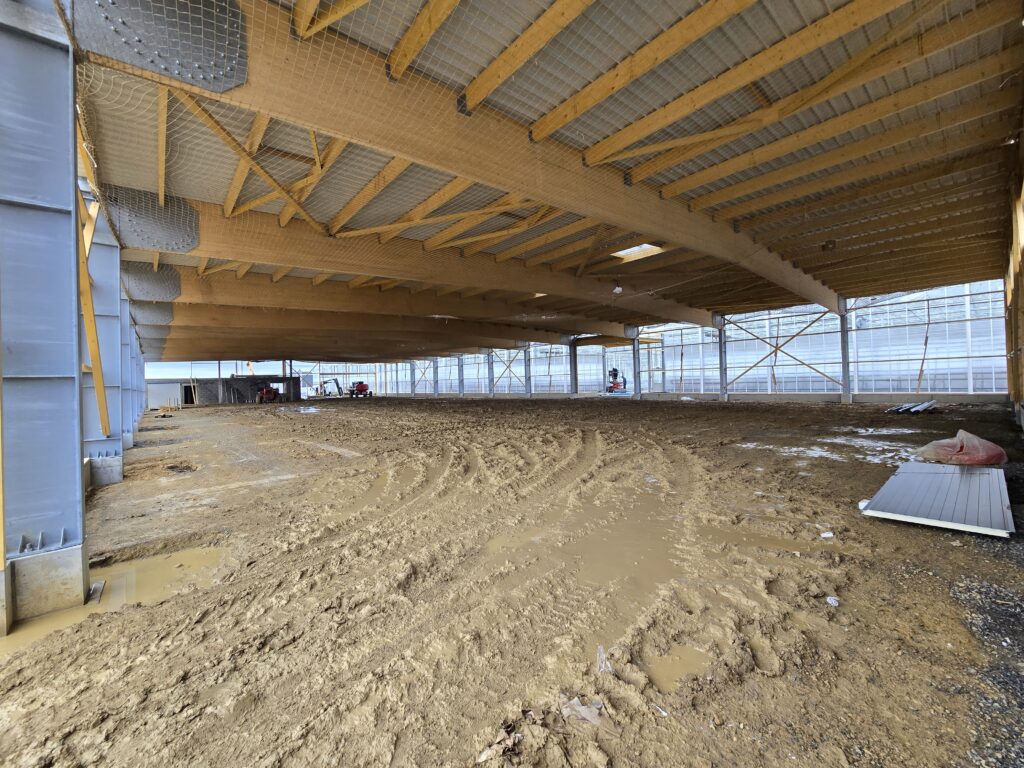 Le bâtiment destiné au conditionnement de tomate fera 30 mètres de largeur par 70 mètres de longueur, soit 2100 m² de surface couverte.